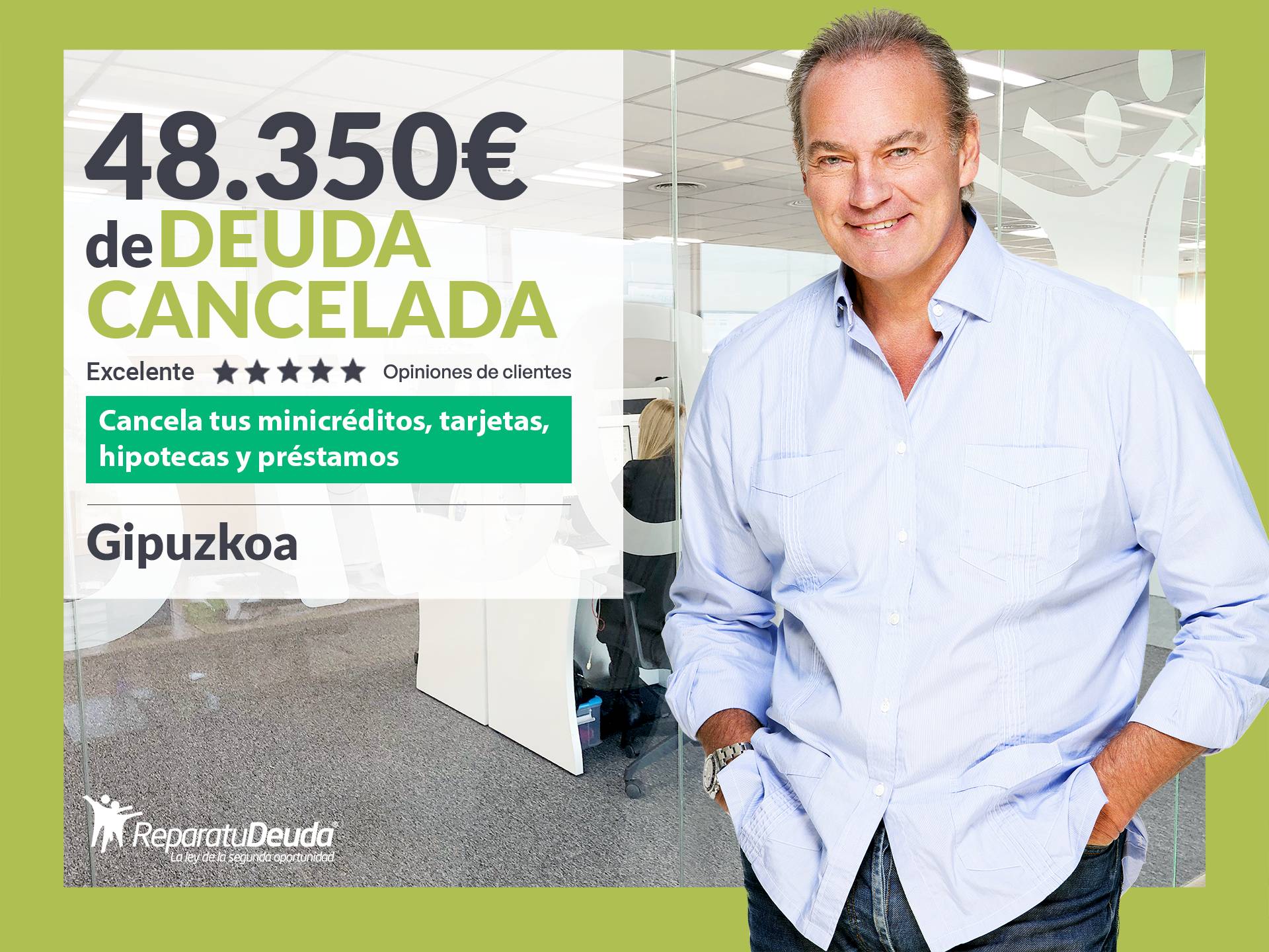 Repara tu Deuda, despacho de abogados líder en España en la Ley de Segunda Oportunidad, ha logrado cancelar una deuda que ascendía a 48.350 euros en Gipuzkoa (País Vasco) aplicando la Ley de Segunda Oportunidad.