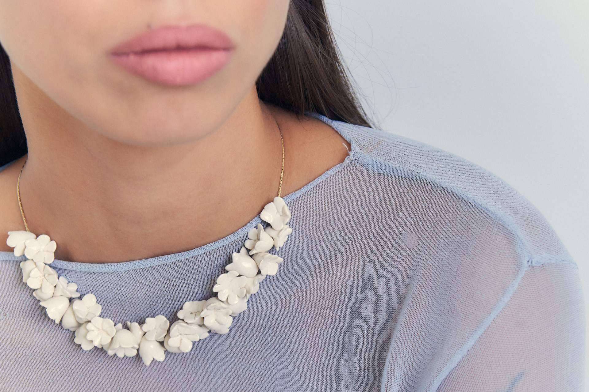 Cerámica, flores y color. Parece el sello de la firma, que una vez más ha conseguido que este tridente conceptual se reinvente y dé lugar a una selección única de collares, pendientes, anillos y pulseras. Todas esas piezas, elaboradas por Julieta Álvarez, una a una, en su taller de Madrid. “Se trata de un trabajo que lleva años configurándose, años de modelados, de pruebas, de emociones…”.