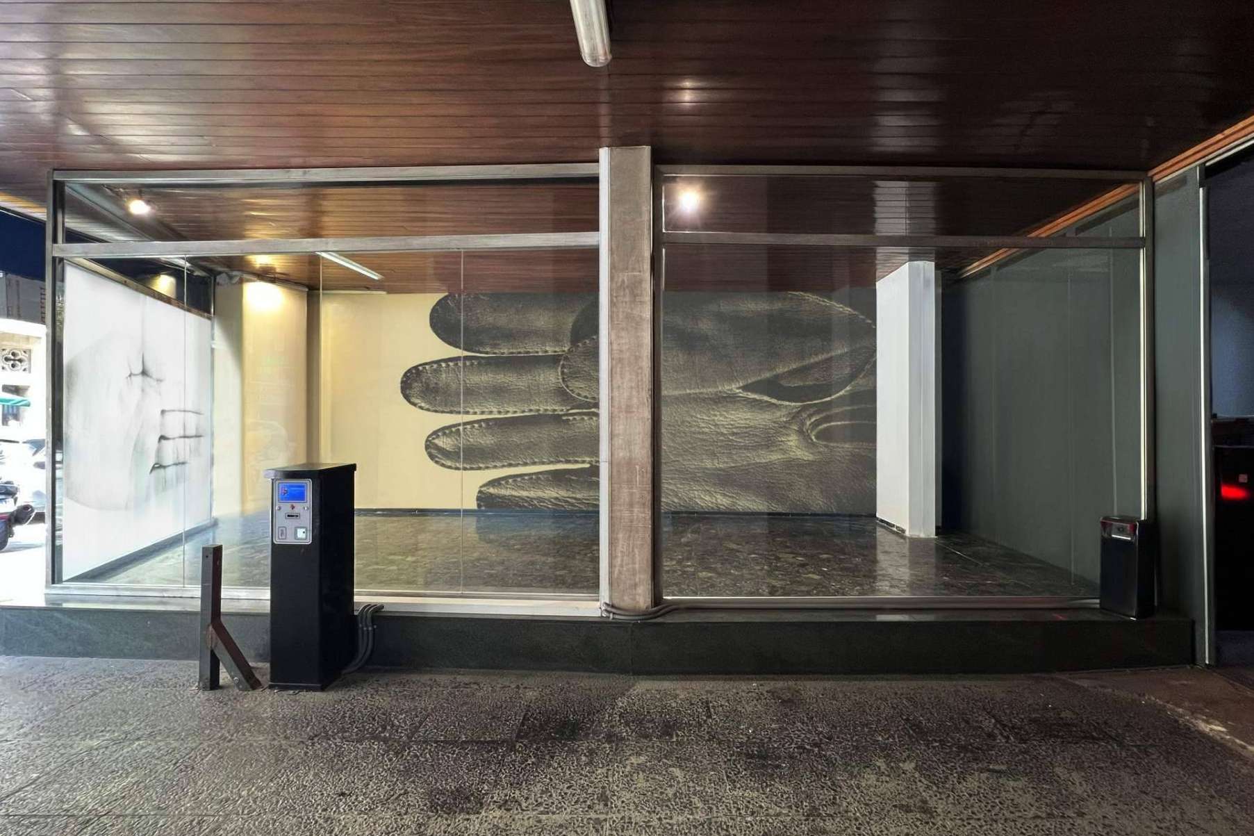 Para su obra en Parking, Monk ha colocado el guante de Maciunas en la pared principal y ha instalado un vinilo translúcido con la imagen de la mano en el vidrio frontal. Con la ironía que caracteriza su trabajo, Monk propone una reinterpretación de la obra de Maciunas, sobredimensionándola y llevándola al ámbito del arte público, estableciendo un diálogo entre las obras de Maciunas y Félix González-Torres. Además, hace un guiño humorístico al espacio en sí, titulando su obra Hand In Glove Compartment, en referencia al uso obsoleto de las guanteras de los coches.