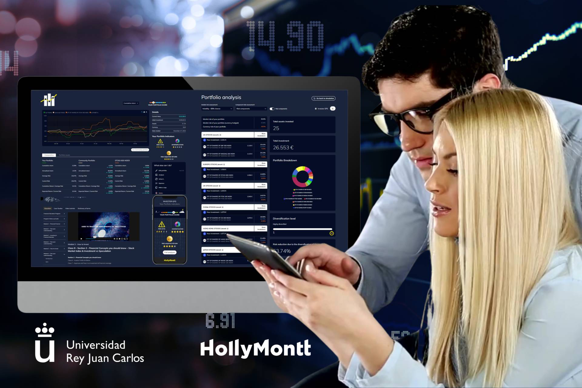 El Máster Universitario en Asesoramiento y Planificación Financiera de la Universidad Rey Juan Carlos y HollyMontt han alcanzado un acuerdo de colaboración para potenciar el aprendizaje práctico del alumnado mediante herramientas de simulación para la toma de decisiones en escenarios reales del mundo de la inversión.