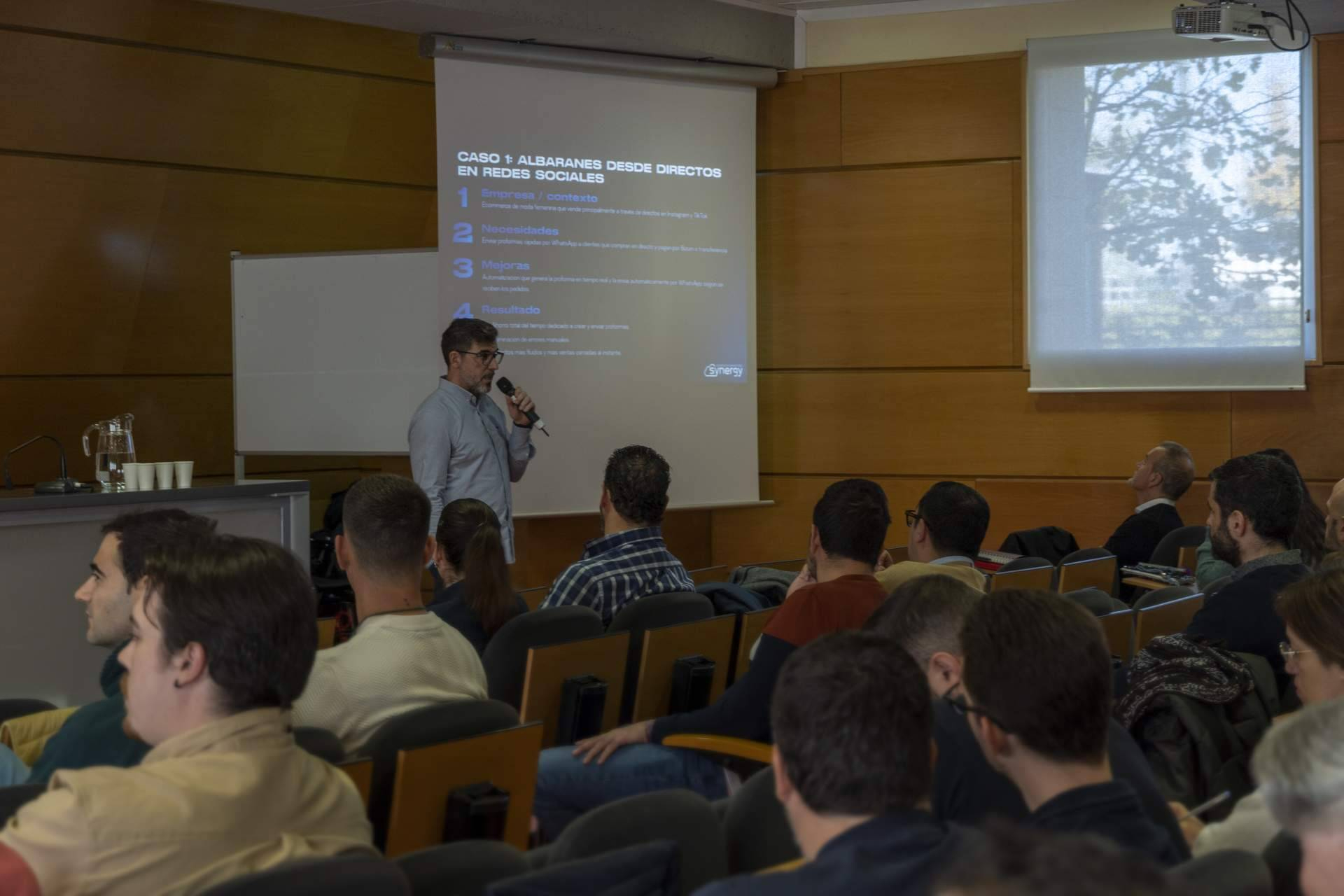 La sesión arrancó con una reflexión contundente: todas las personas disponen de los mismos 1440 minutos al día, pero la diferencia está en cómo se utilizan. Una parte importante de ese tiempo se consume en tareas repetitivas, procesos manuales o acciones administrativas que, según expusieron los responsables de Synergy, no requieren creatividad humana y pueden ser delegadas a sistemas inteligentes.